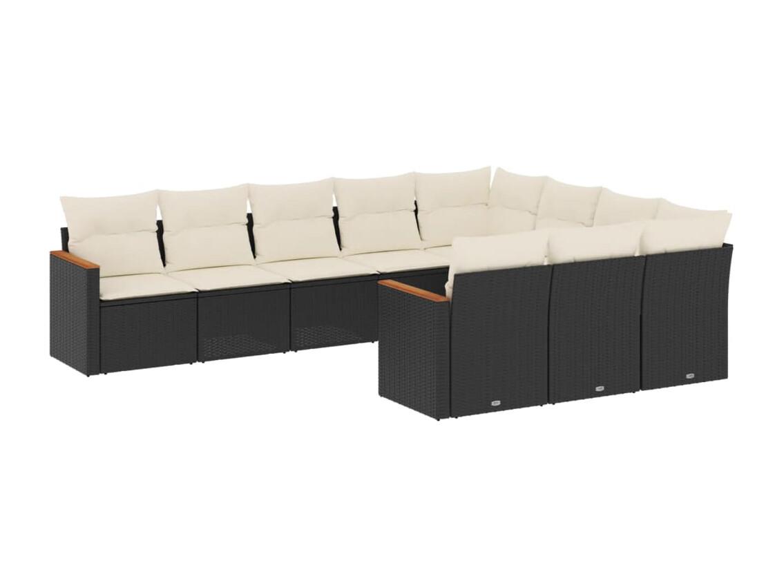 Salon de jardin 10 pièces avec coussins noir résine tressée