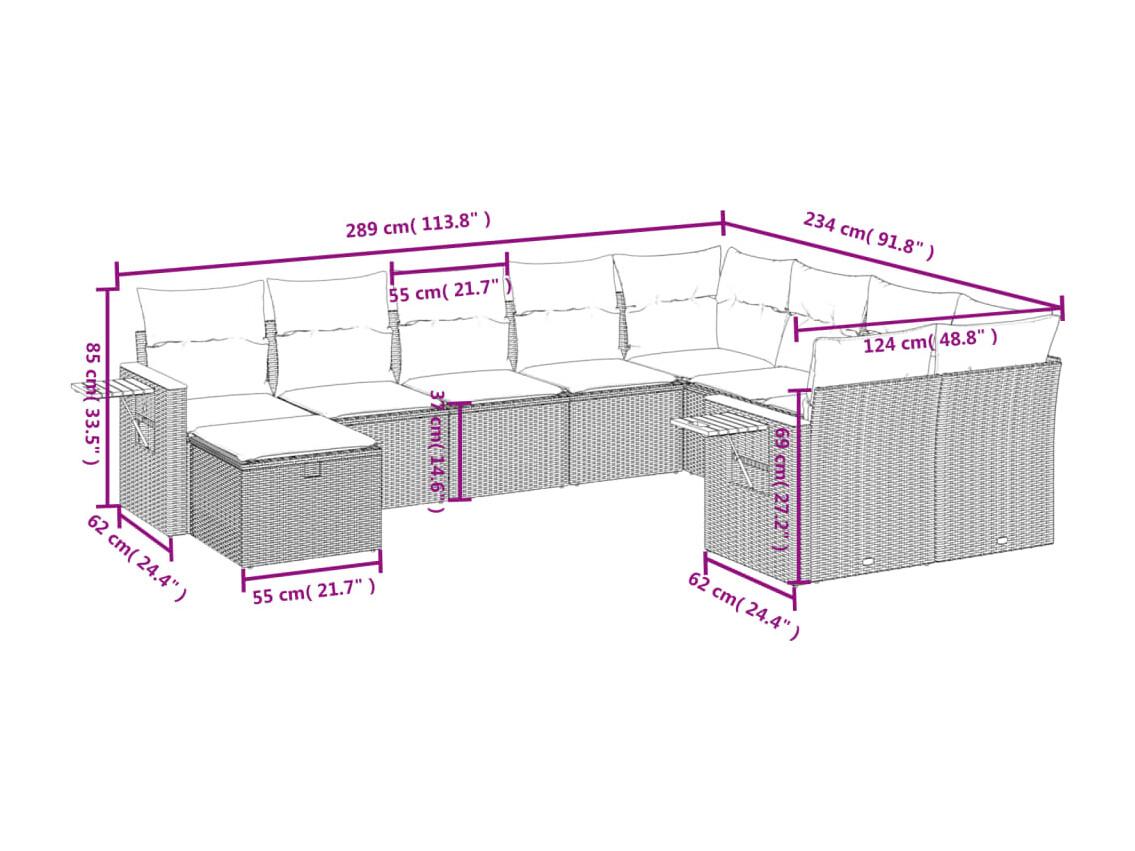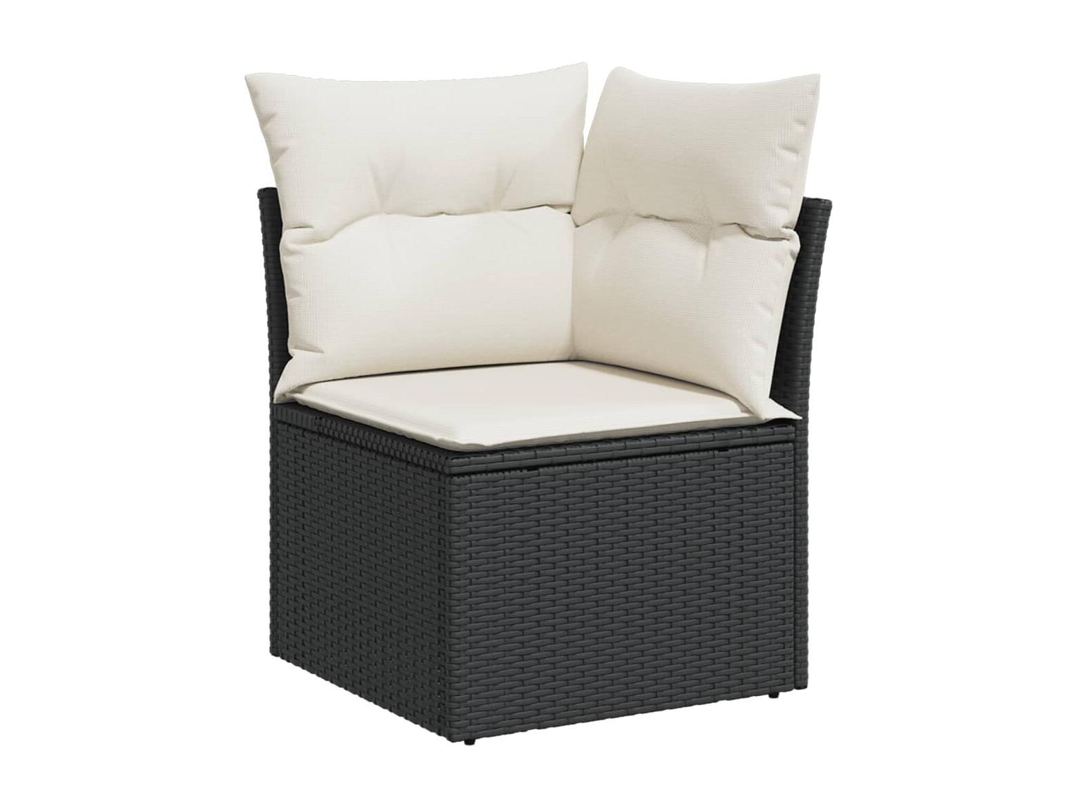 Salon de jardin 10 pièces avec coussins noir résine tressée