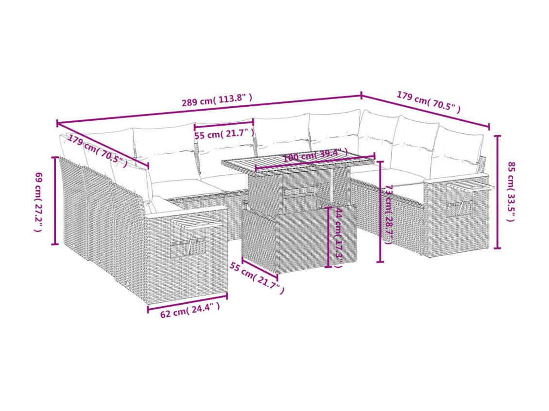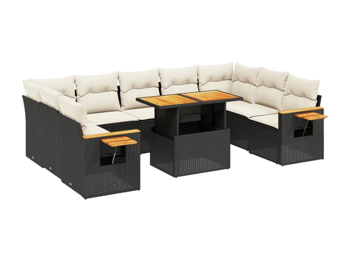 Salon de jardin 10 pièces avec coussins noir résine tressée