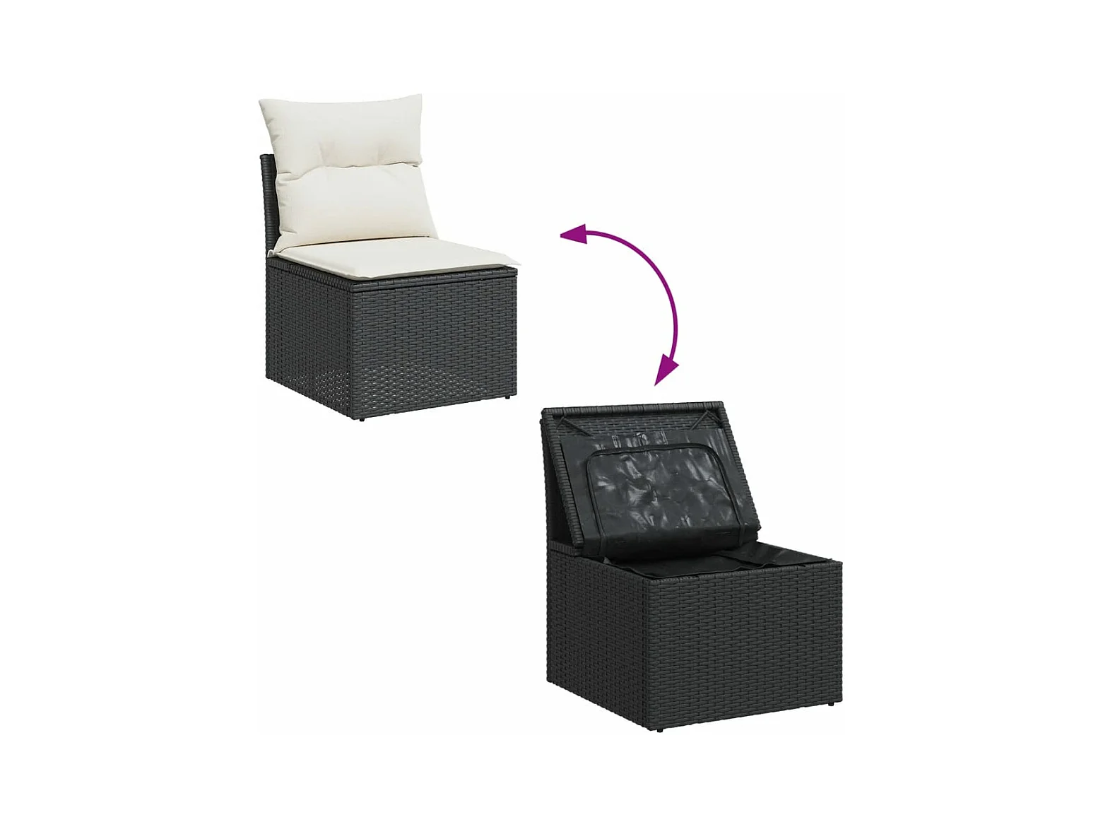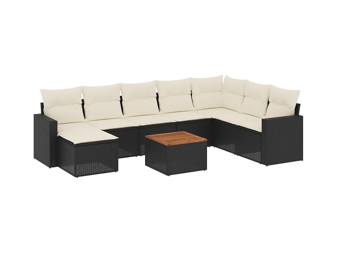 Salon de jardin 10 pièces avec coussins noir résine tressée