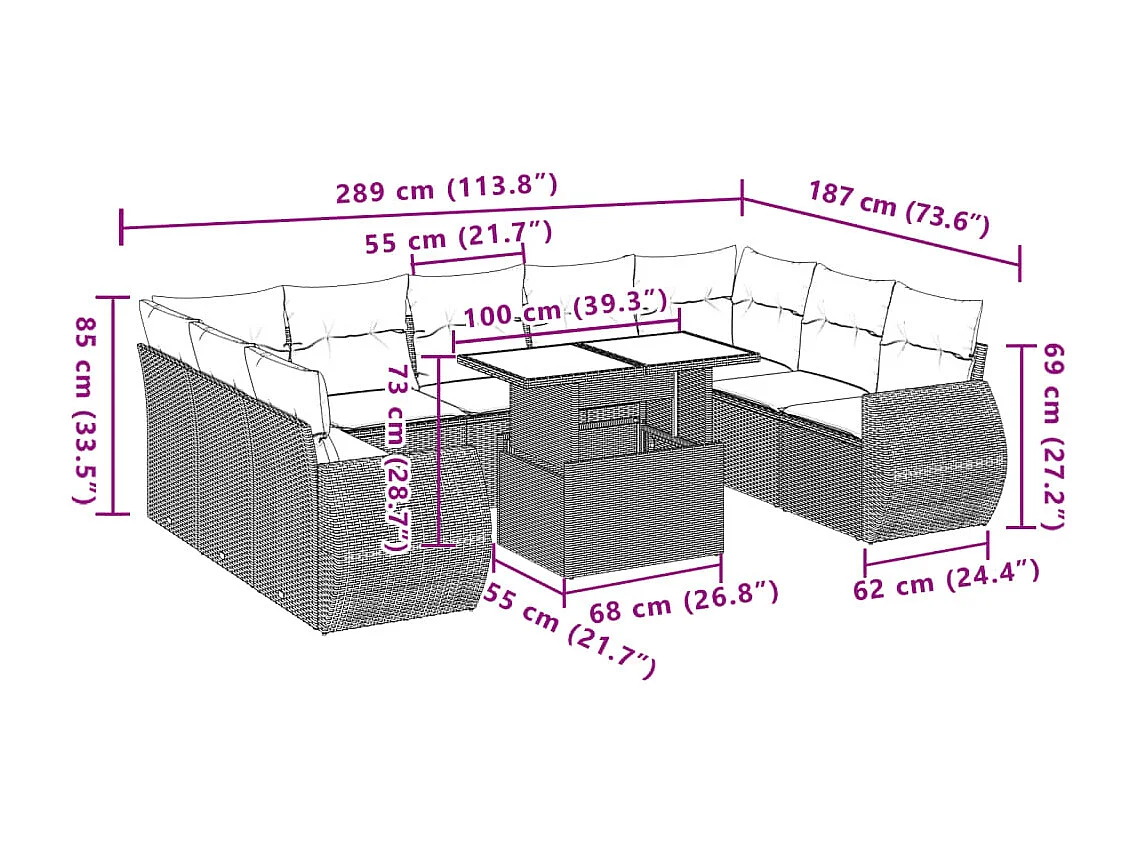 Salon de jardin 10 pcs avec coussins noir résine tressée