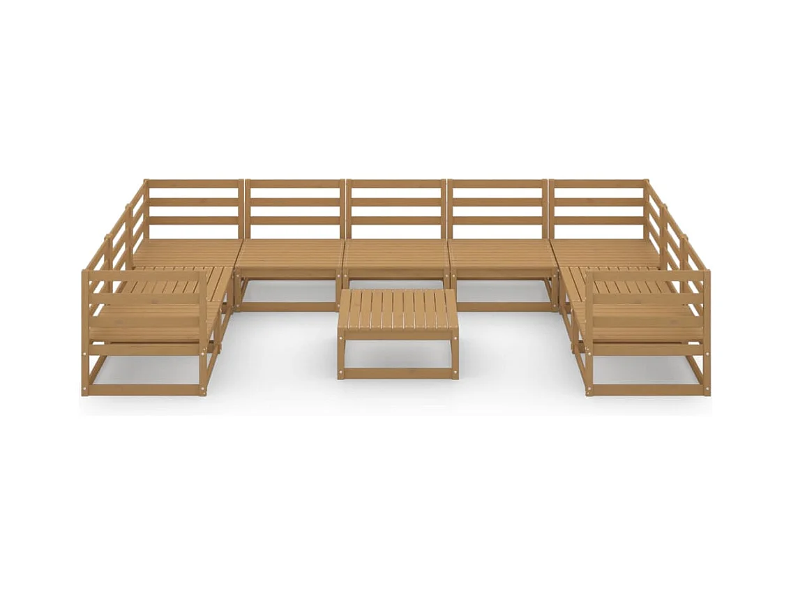 Salon de jardin 10 pièces marron miel bois de pin massif