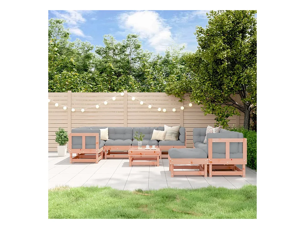 Salon de jardin 10 pièces marron miel bois de pin massif