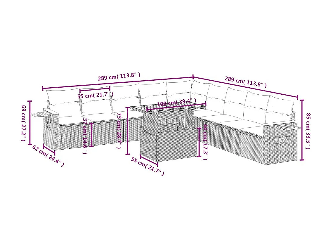 Salon de jardin 11 pcs avec coussins gris résine tressée