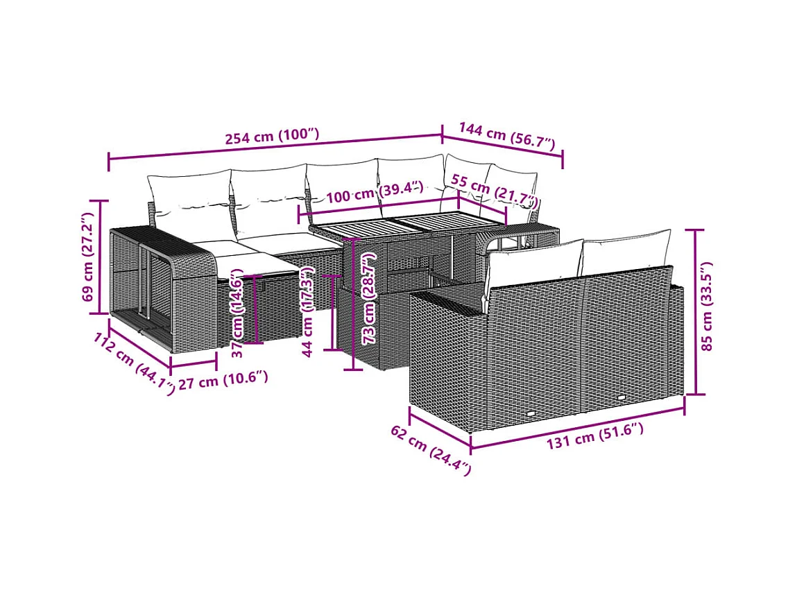 Salon complet de jardin Canapé 2 places et 2 fauteuils