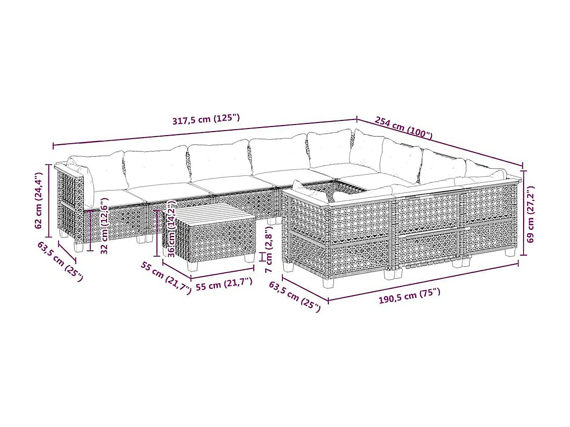Salon de jardin 11 pcs avec coussins beige résine tressée