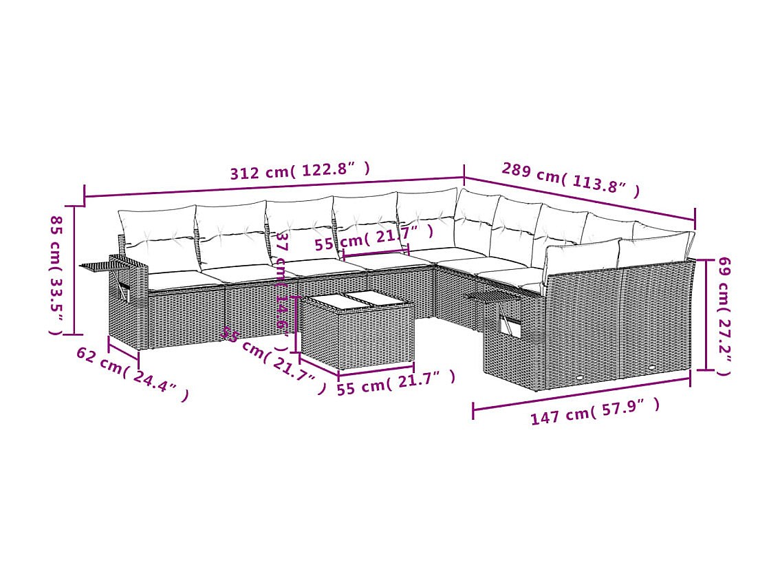 Salon de jardin 11 pcs avec coussins beige résine tressée