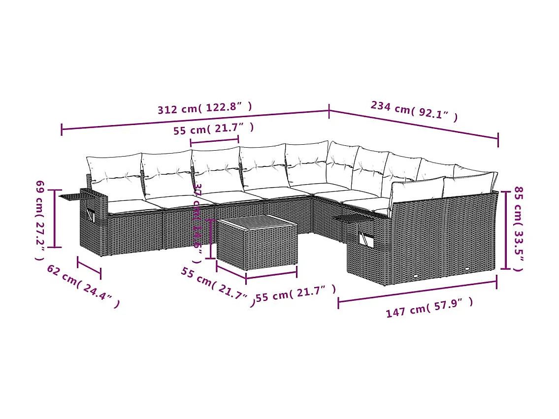 Salon de jardin 11 pcs avec coussins beige résine tressée