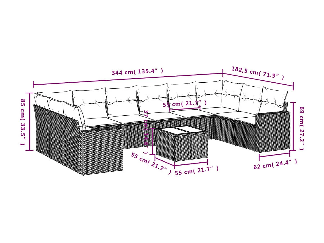Salon de jardin 11 pcs avec coussins beige résine tressée