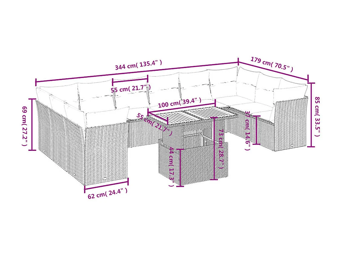 Salon de jardin 11 pcs avec coussins beige résine tressée