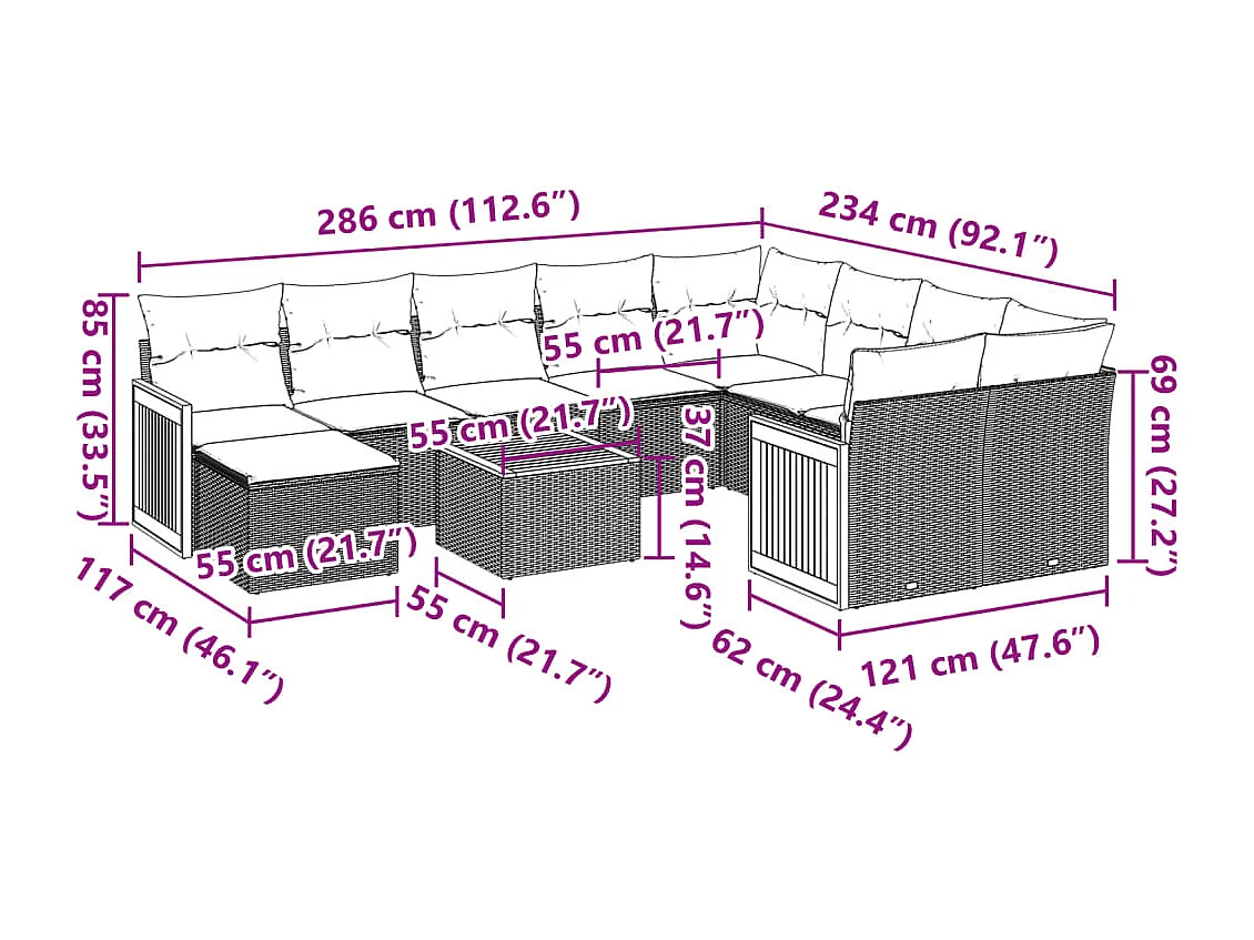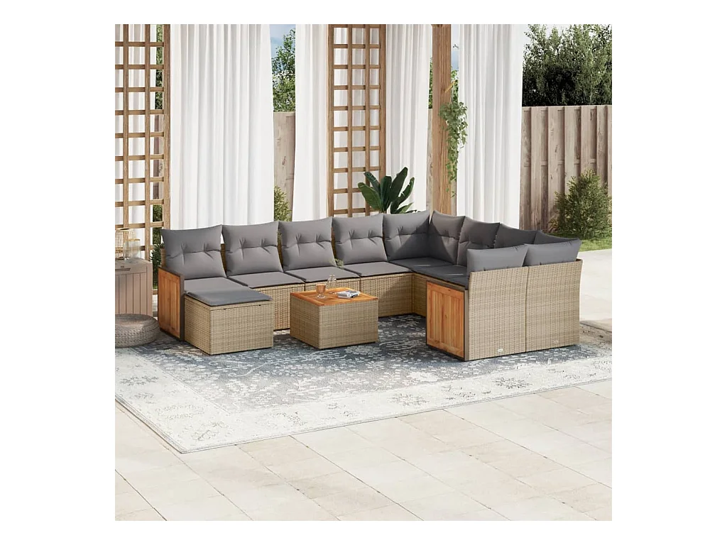 Salon de jardin avec coussins 10 pcs beige résine tressée