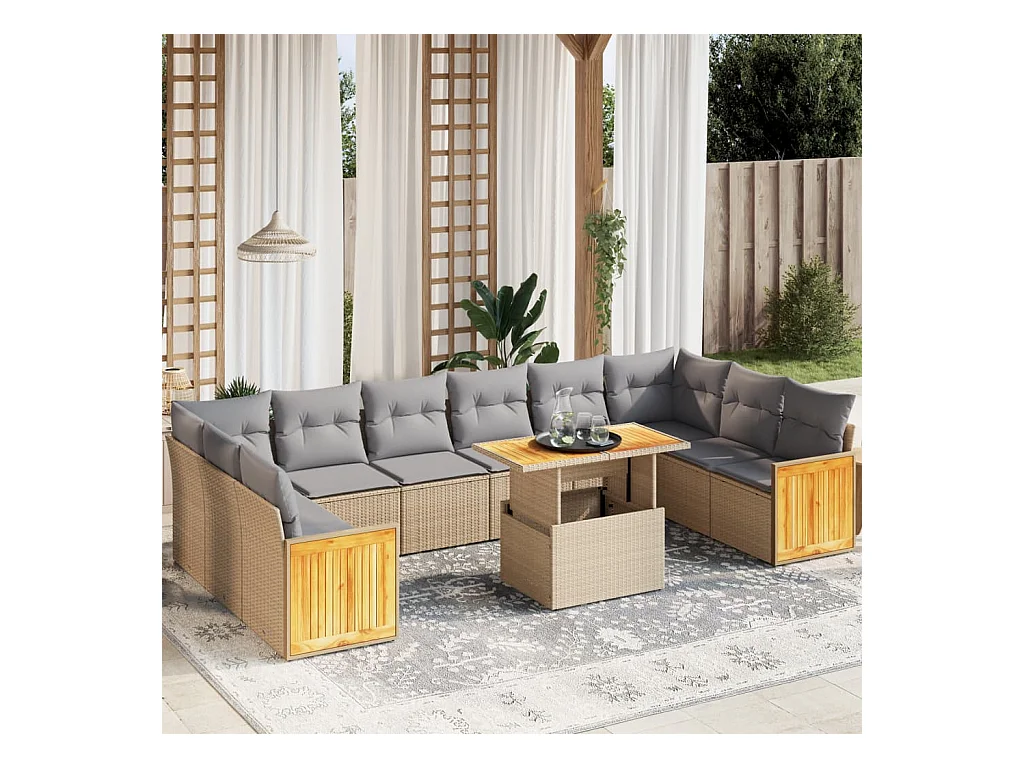 Salon de jardin 11 pcs avec coussins beige résine tressée