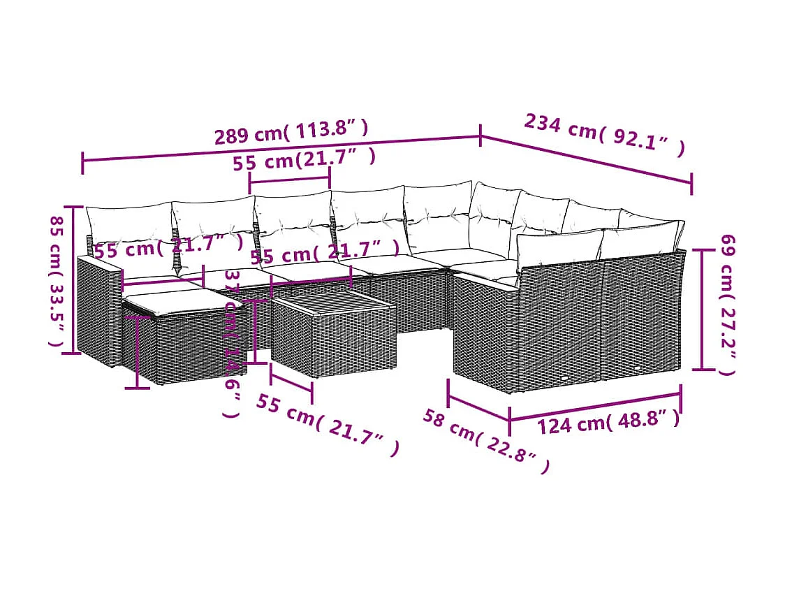 Salon de jardin 11 pcs avec coussins beige résine tressée