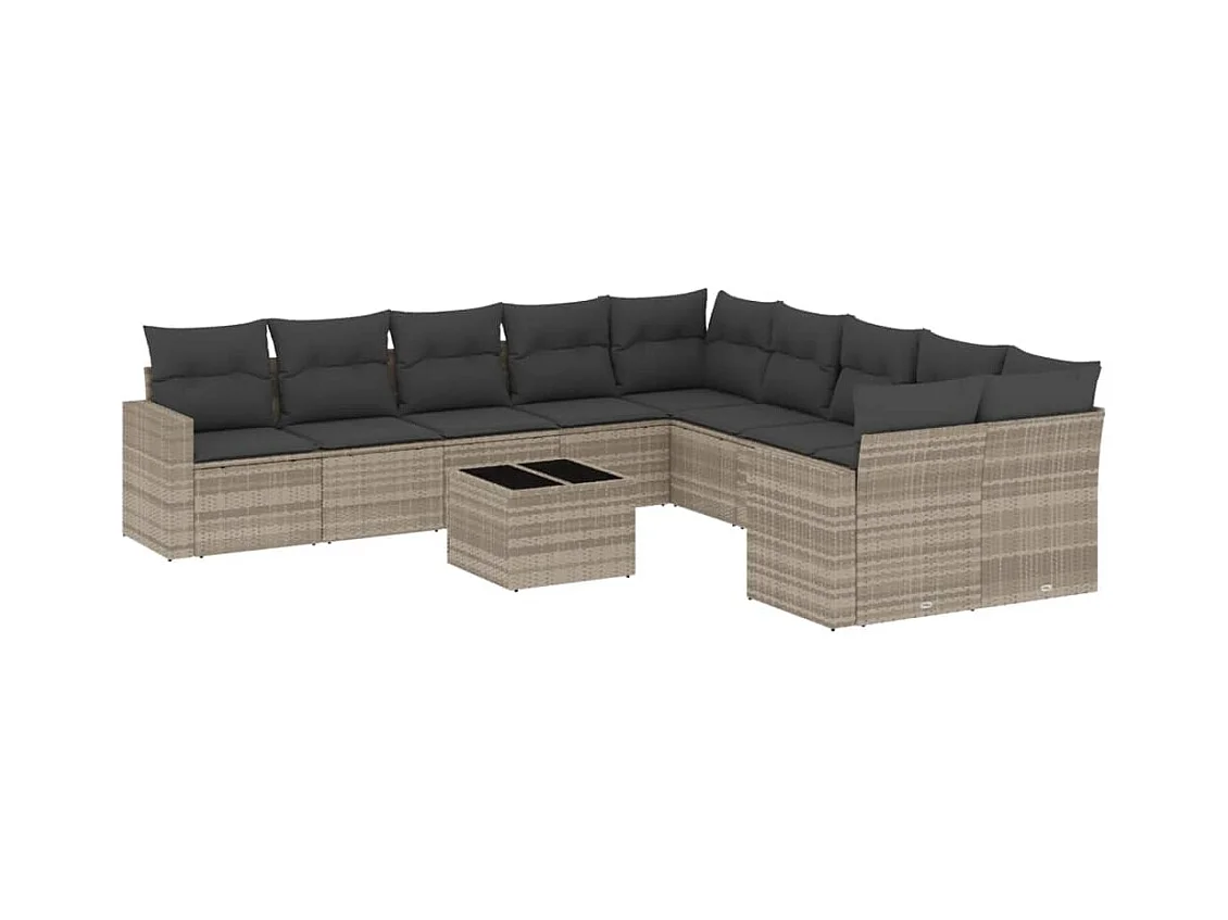 Salon de jardin 11 pcs avec coussins gris clair résine tressée