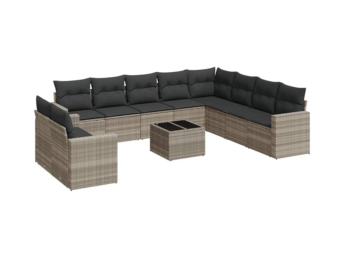 Salon de jardin 11 pcs avec coussins gris clair résine tressée