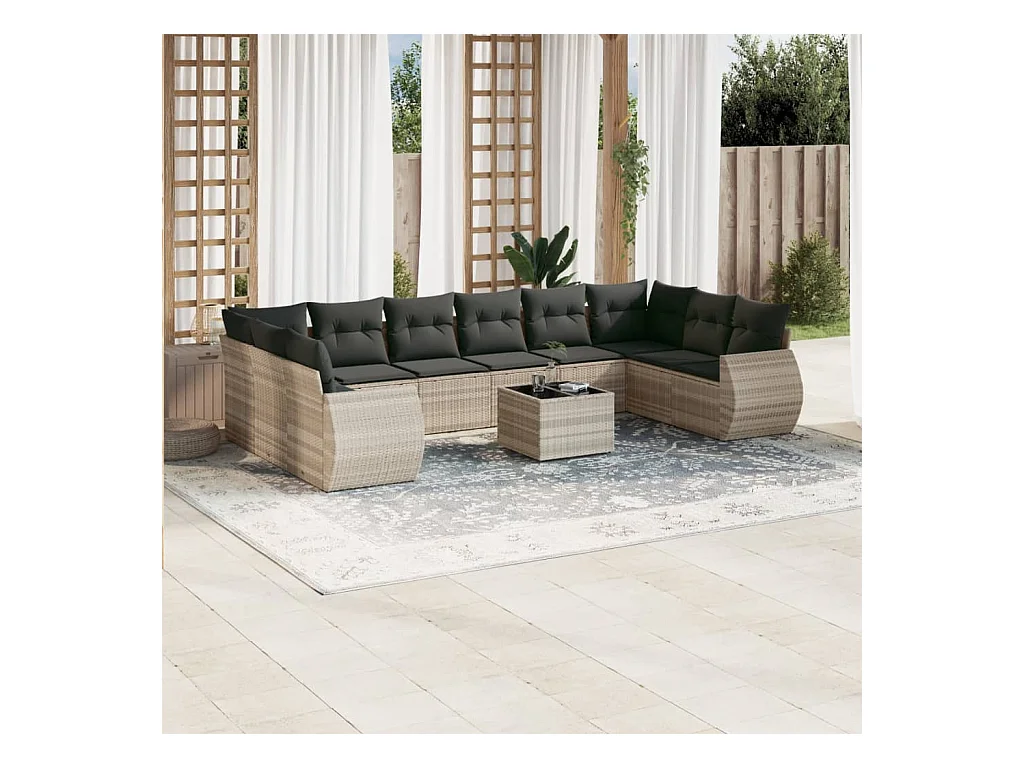 Salon de jardin 11 pcs avec coussins gris clair résine tressée