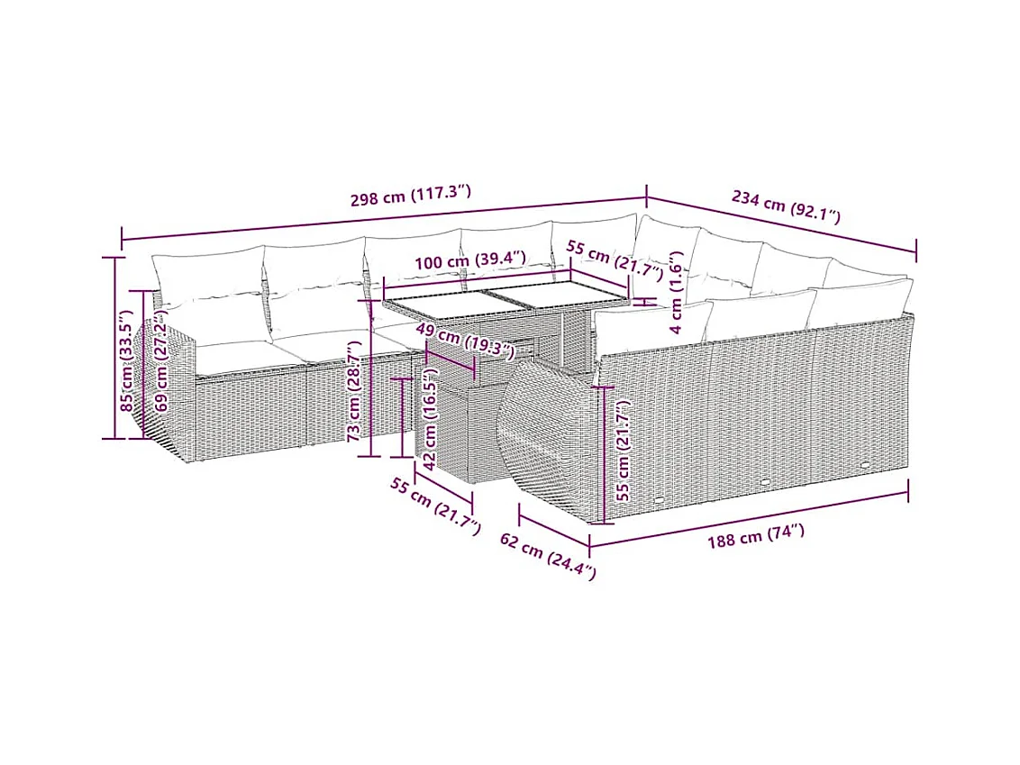 Salon de jardin 11 pcs avec coussins gris clair résine tressée