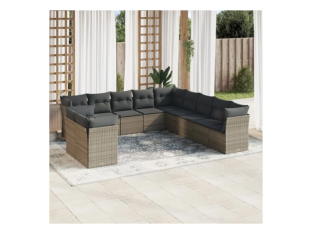 Salon de jardin 11 pcs avec coussins gris résine tressée