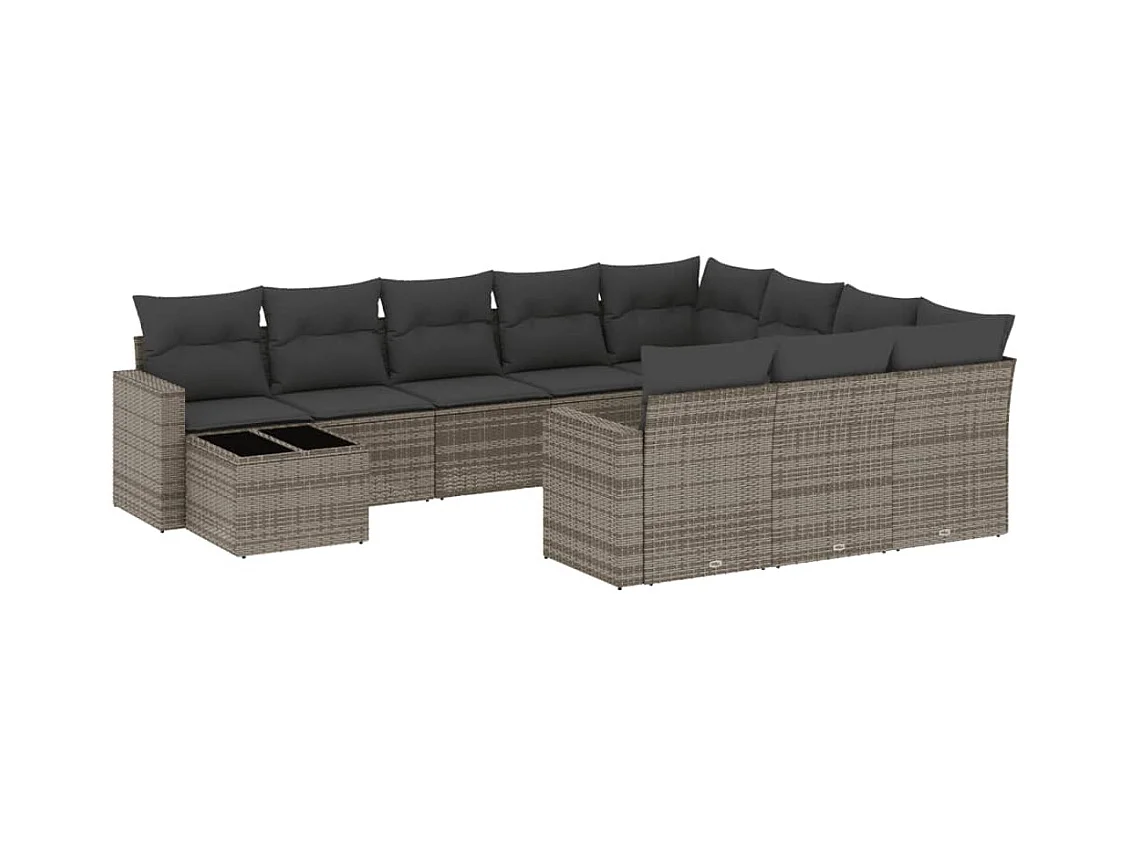 Salon de jardin 11 pcs avec coussins gris résine tressée