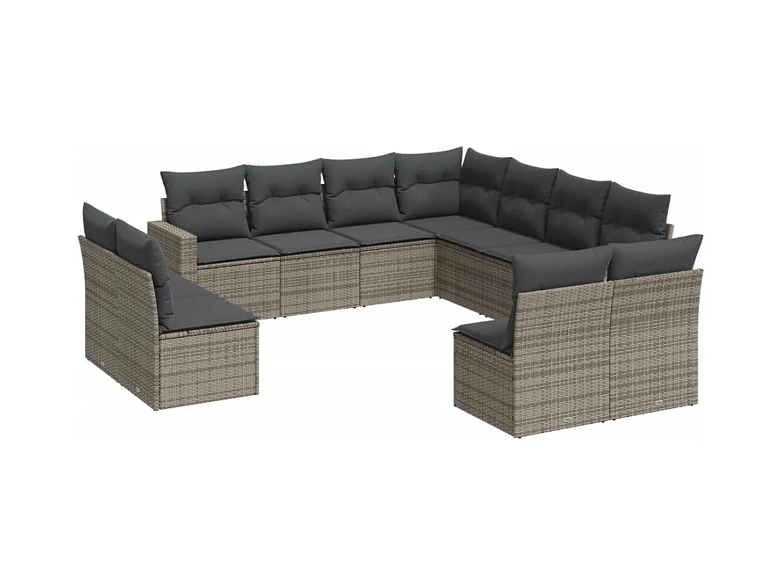 Salon de jardin 11 pcs avec coussins gris résine tressée