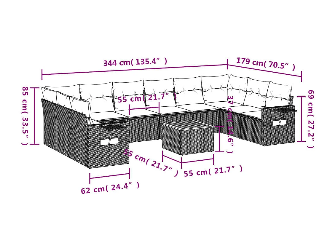 Salon de jardin 11 pcs avec coussins gris résine tressée
