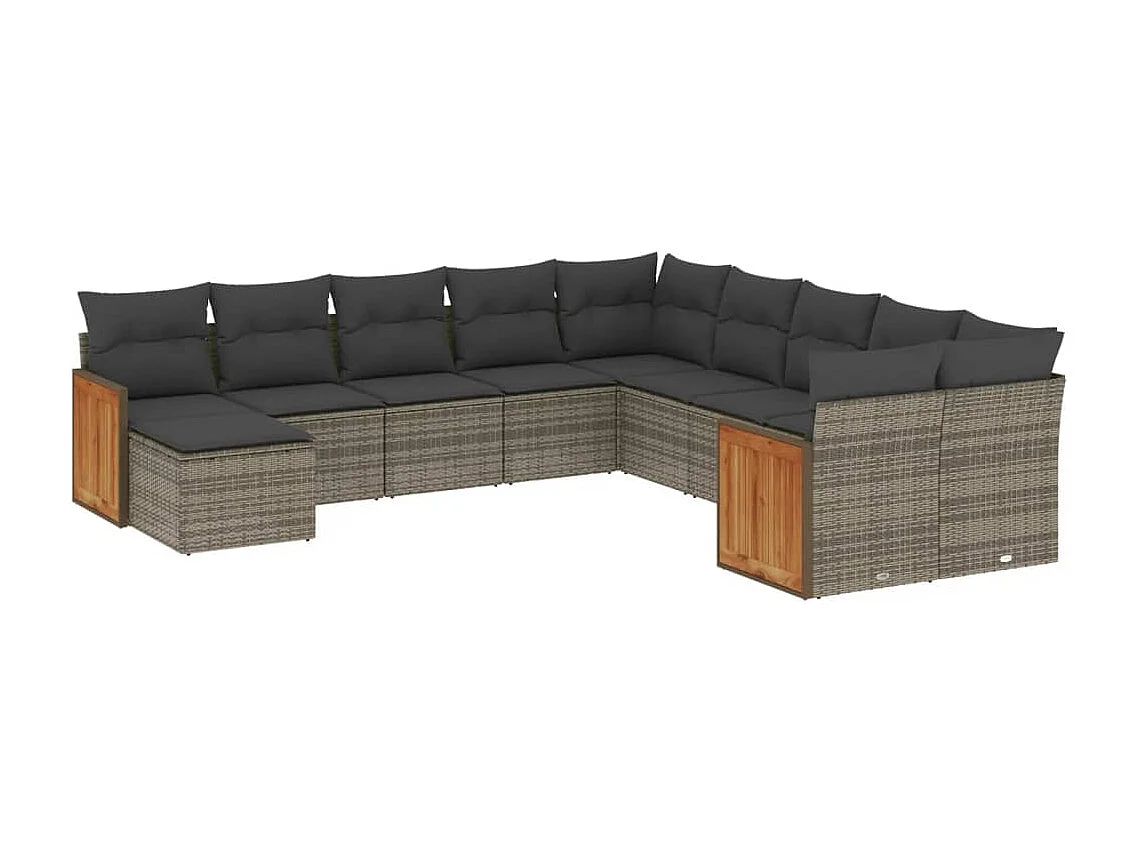 Salon de jardin 11 pcs avec coussins gris résine tressée