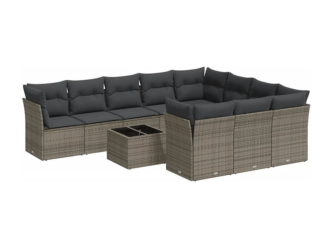 Salon de jardin 11 pcs avec coussins gris résine tressée