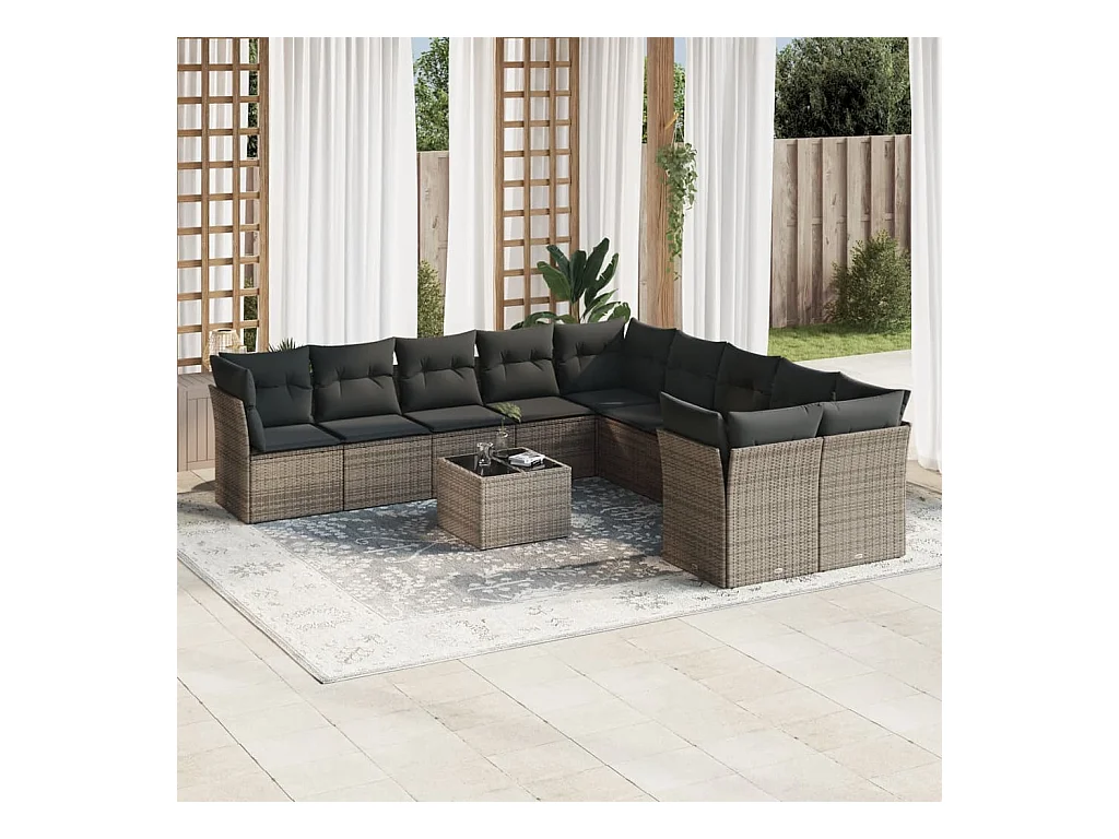Salon de jardin 11 pcs avec coussins gris résine tressée