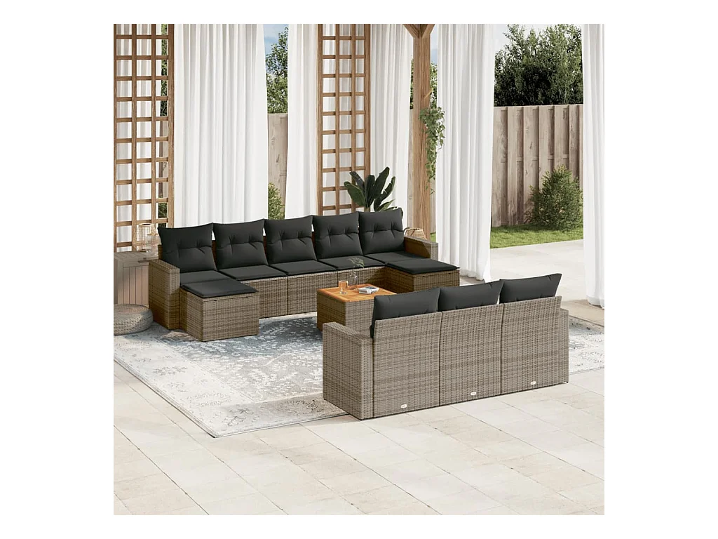 Salon de jardin 11 pcs avec coussins gris résine tressée