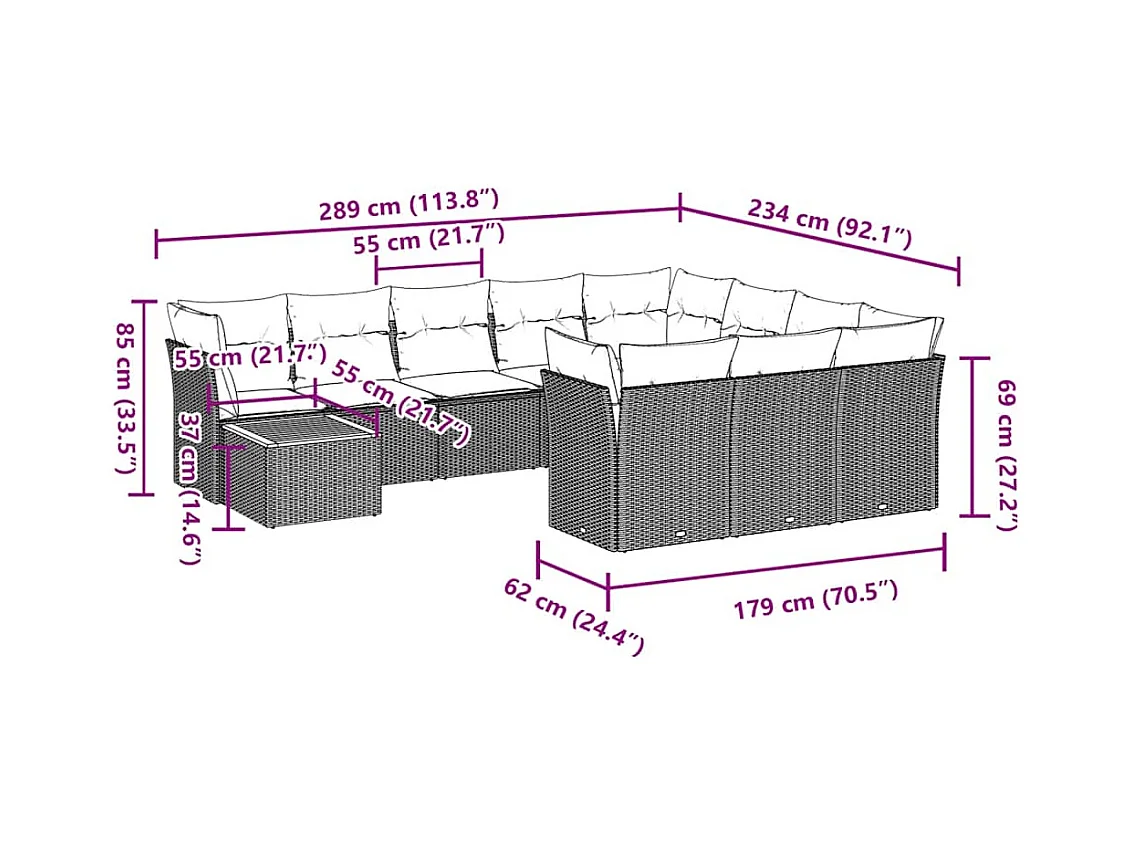 Salon de jardin 10 pcs avec coussins gris résine tressée