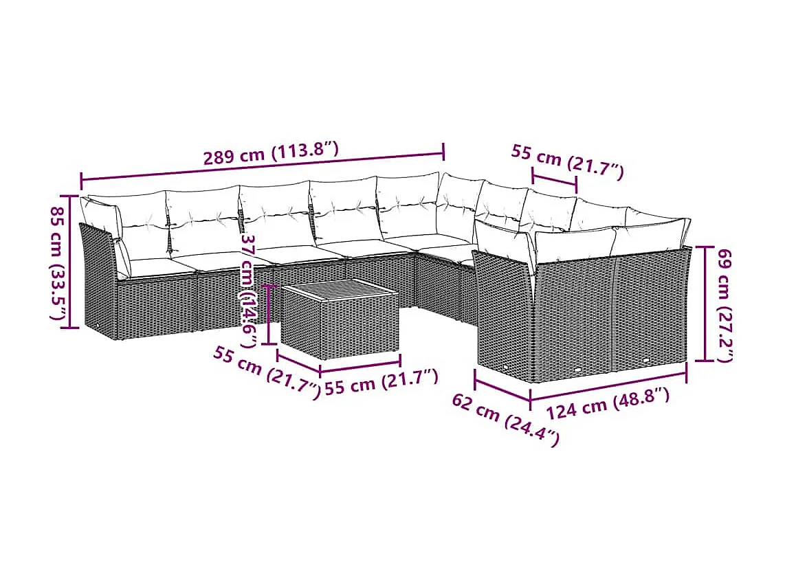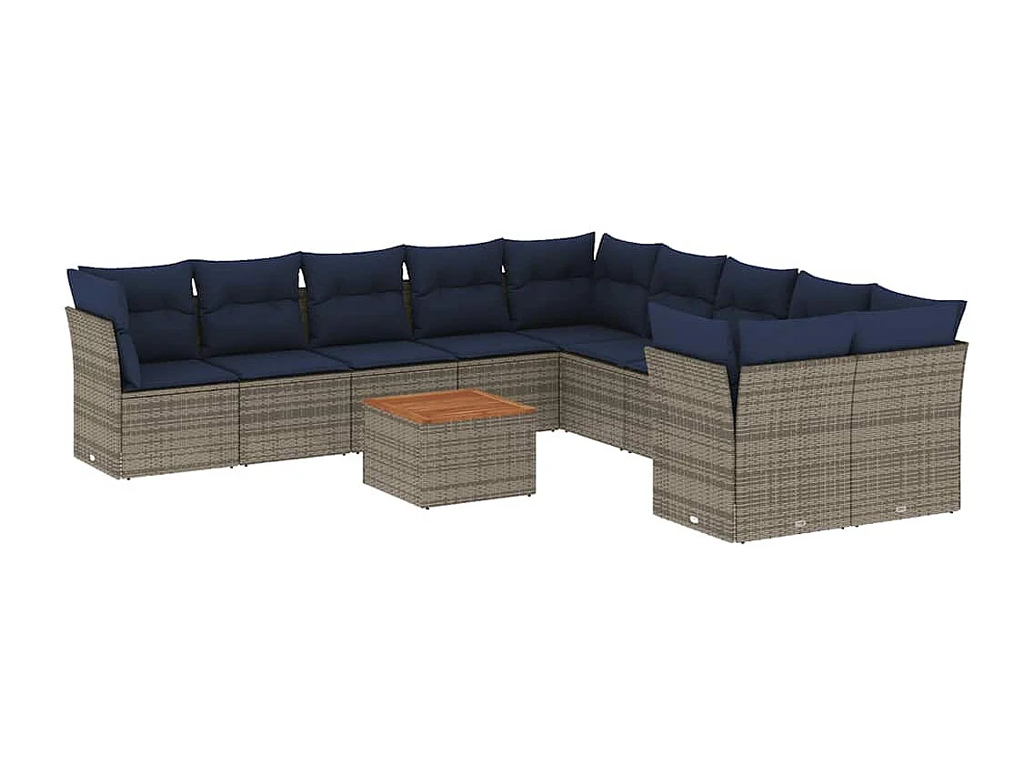 Salon de jardin 11 pcs avec coussins gris résine tressée
