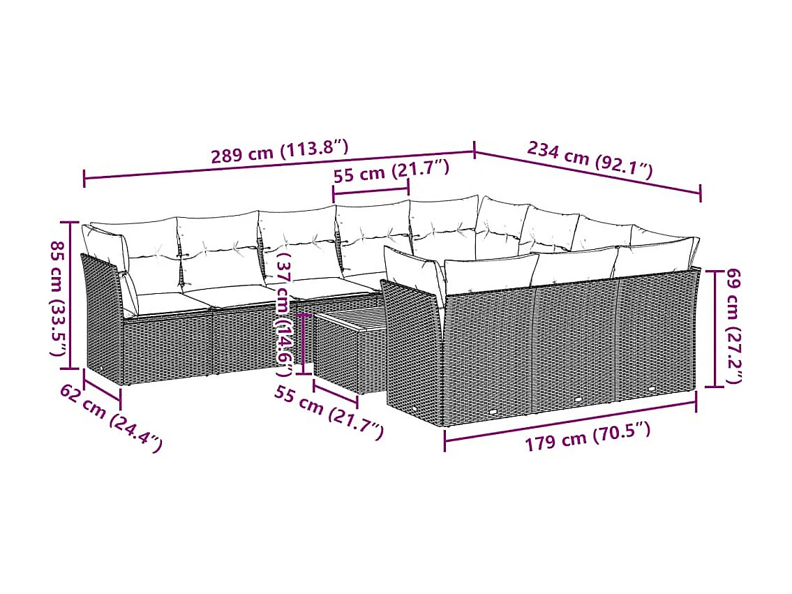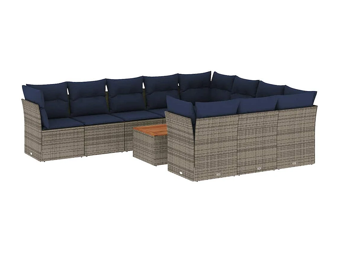 Salon de jardin 11 pcs avec coussins gris résine tressée