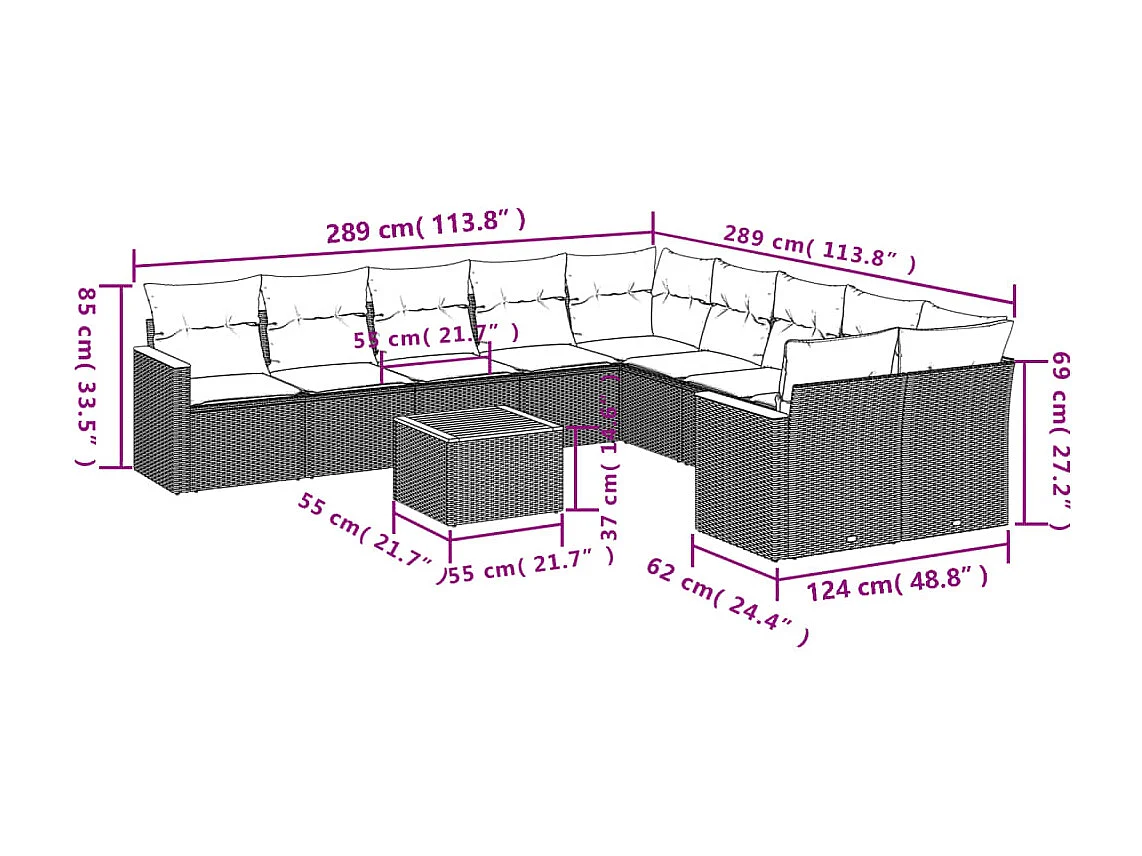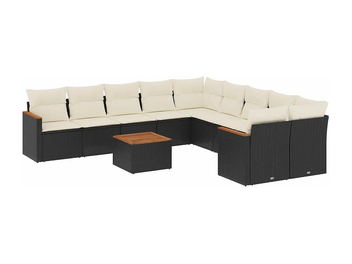 Salon de jardin 11 pcs avec coussins noir résine tressée