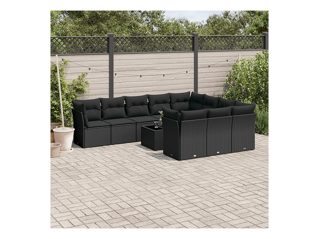 Salon de jardin 10 pcs avec coussins noir résine tressée