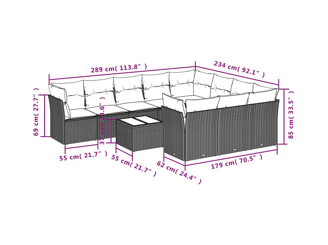 Salon de jardin 11 pcs avec coussins noir résine tressée