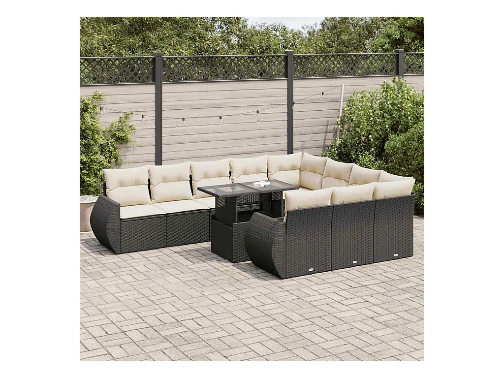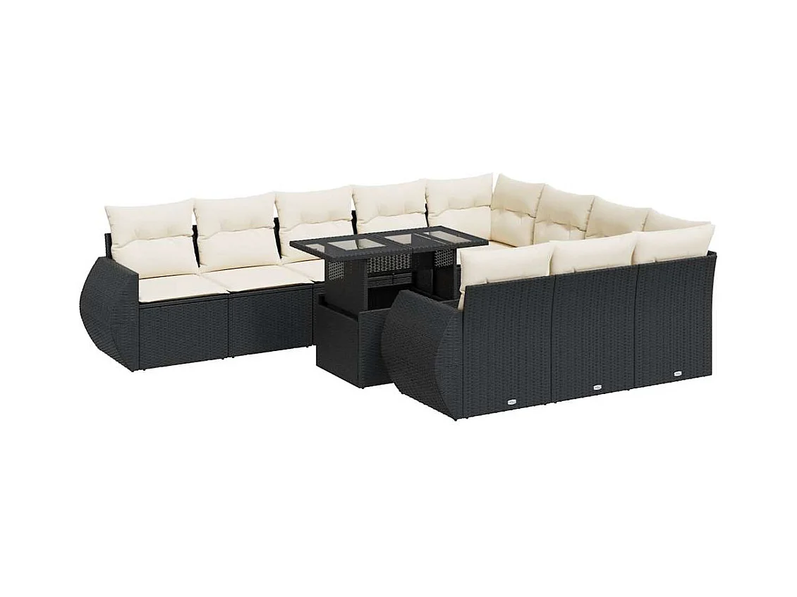 Salon de jardin 11 pcs avec coussins noir résine tressée
