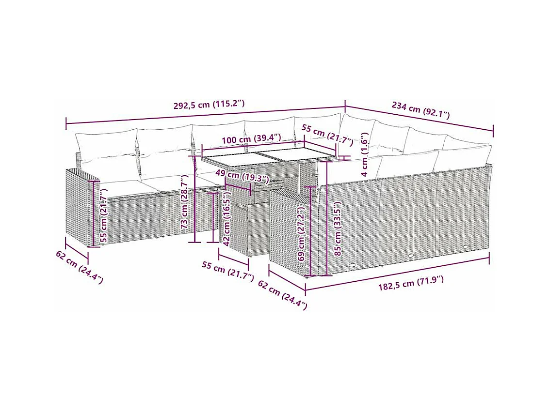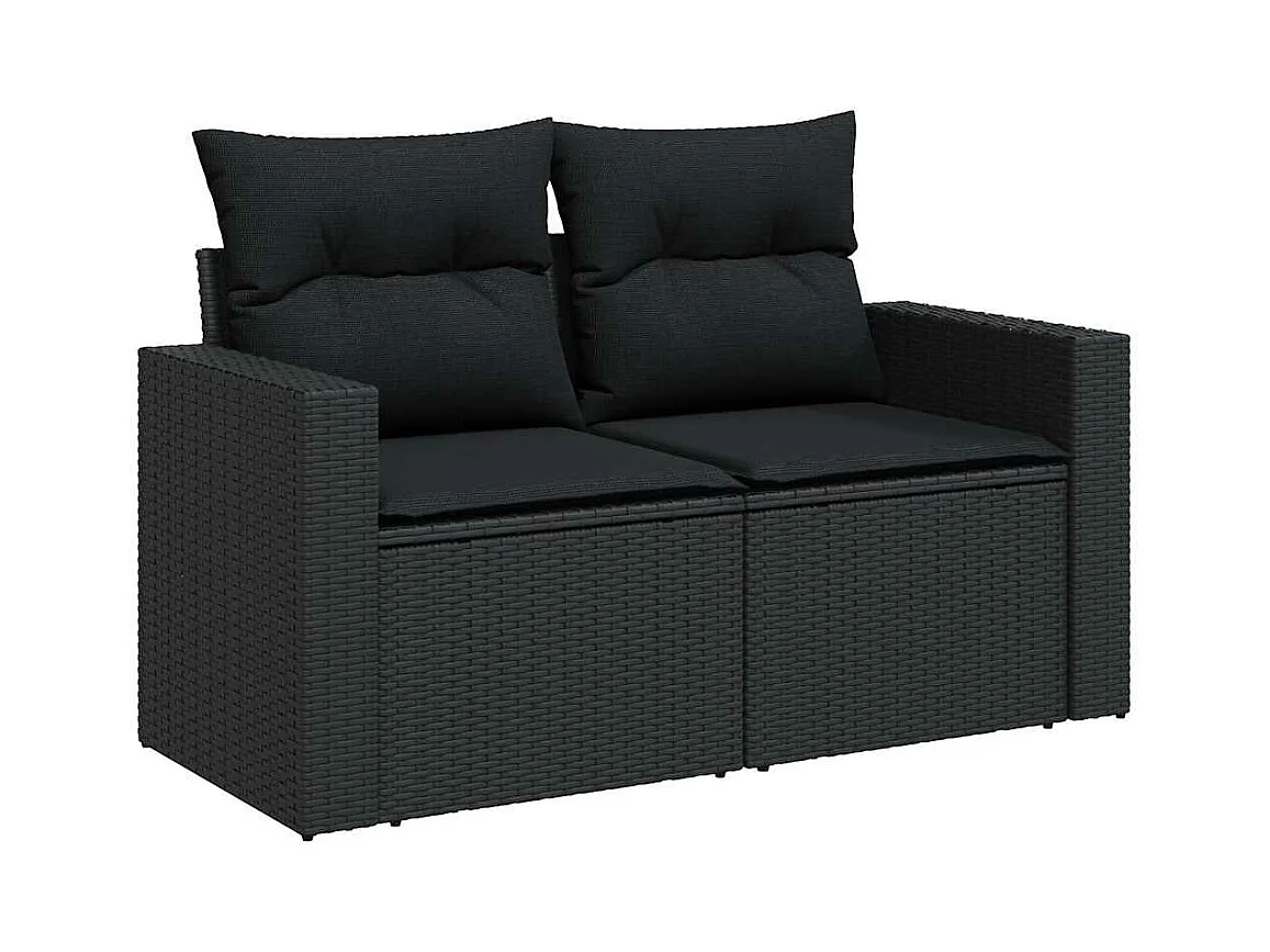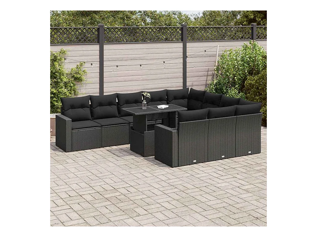 Salon de jardin 10 pcs avec coussins noir résine tressée