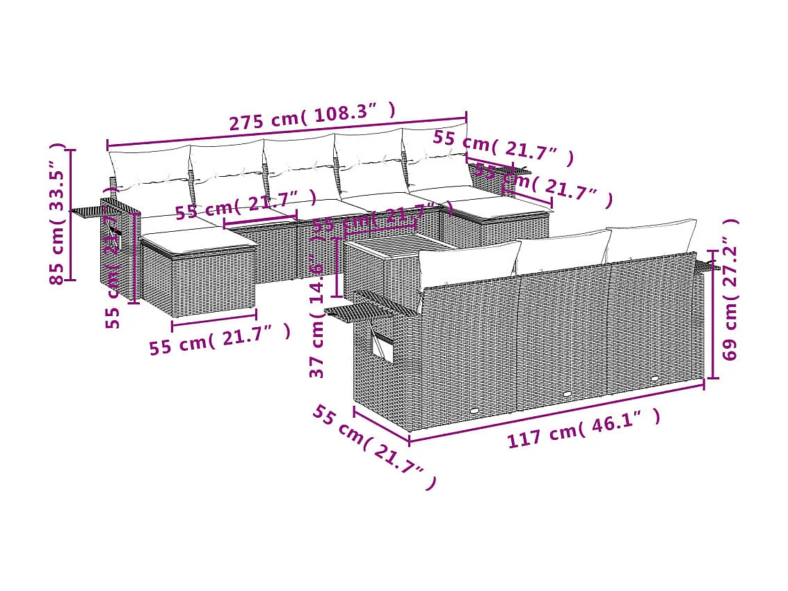 Salon de jardin 11 pcs avec coussins noir résine tressée