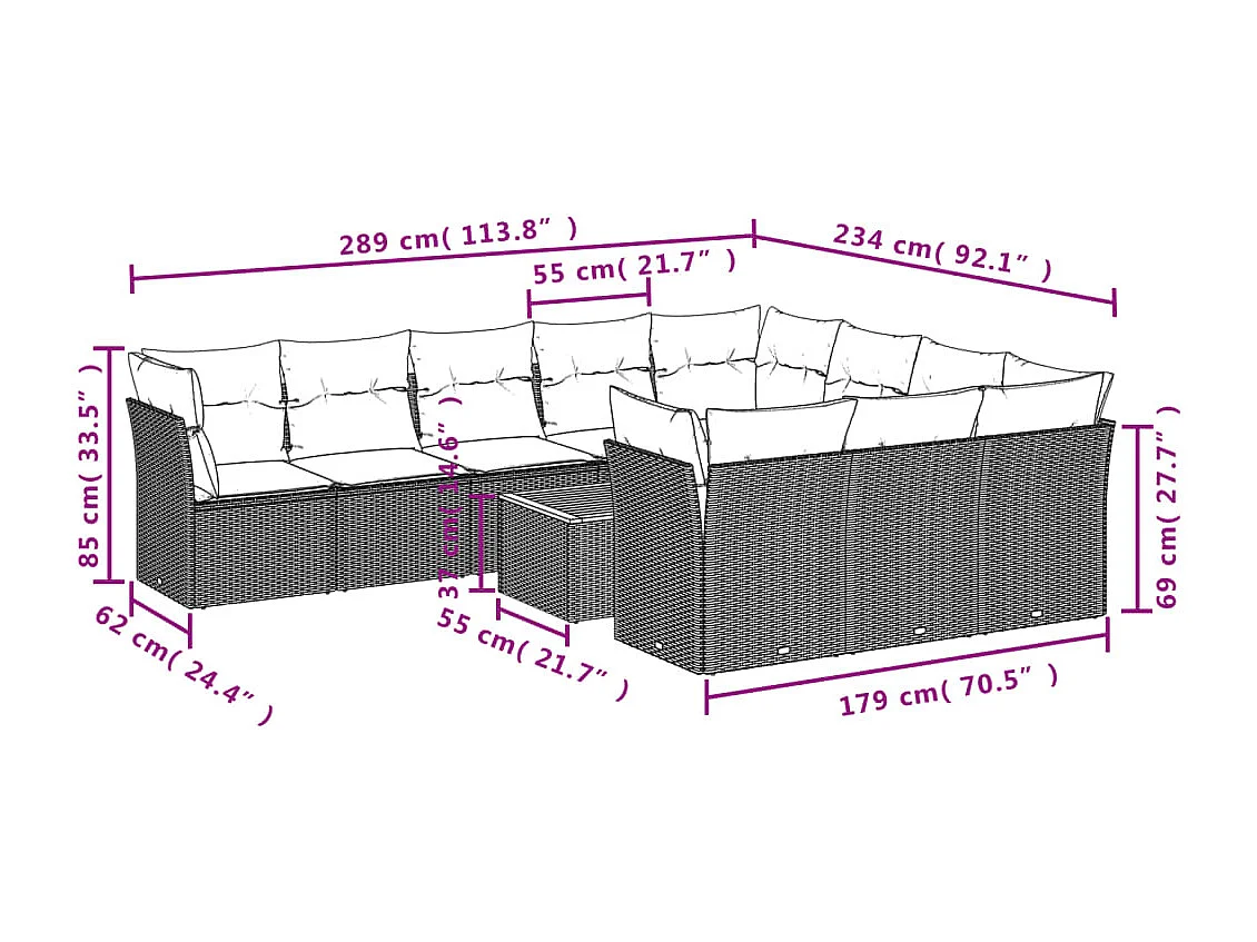 Salon de jardin 11 pcs avec coussins noir résine tressée