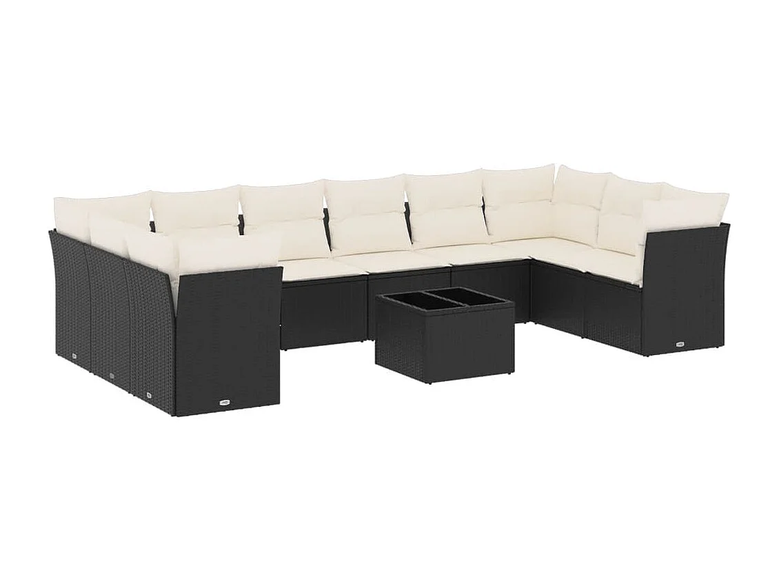 Salon de jardin 11 pcs avec coussins noir résine tressée