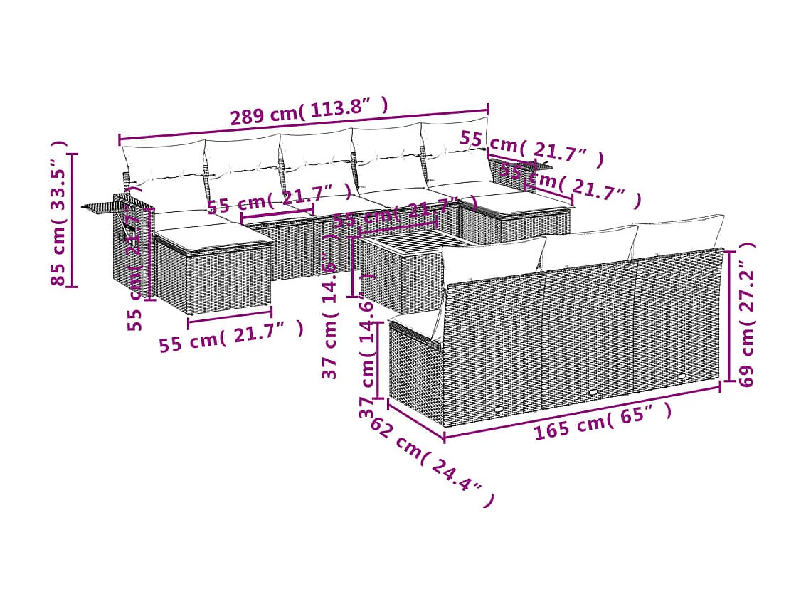 Salon de jardin 10 pcs avec coussins noir résine tressée
