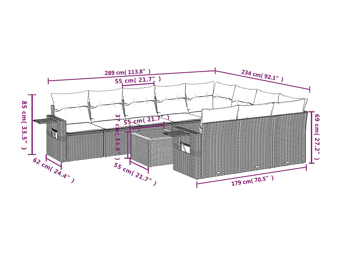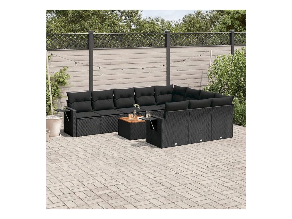 Salon de jardin 10 pcs avec coussins noir résine tressée