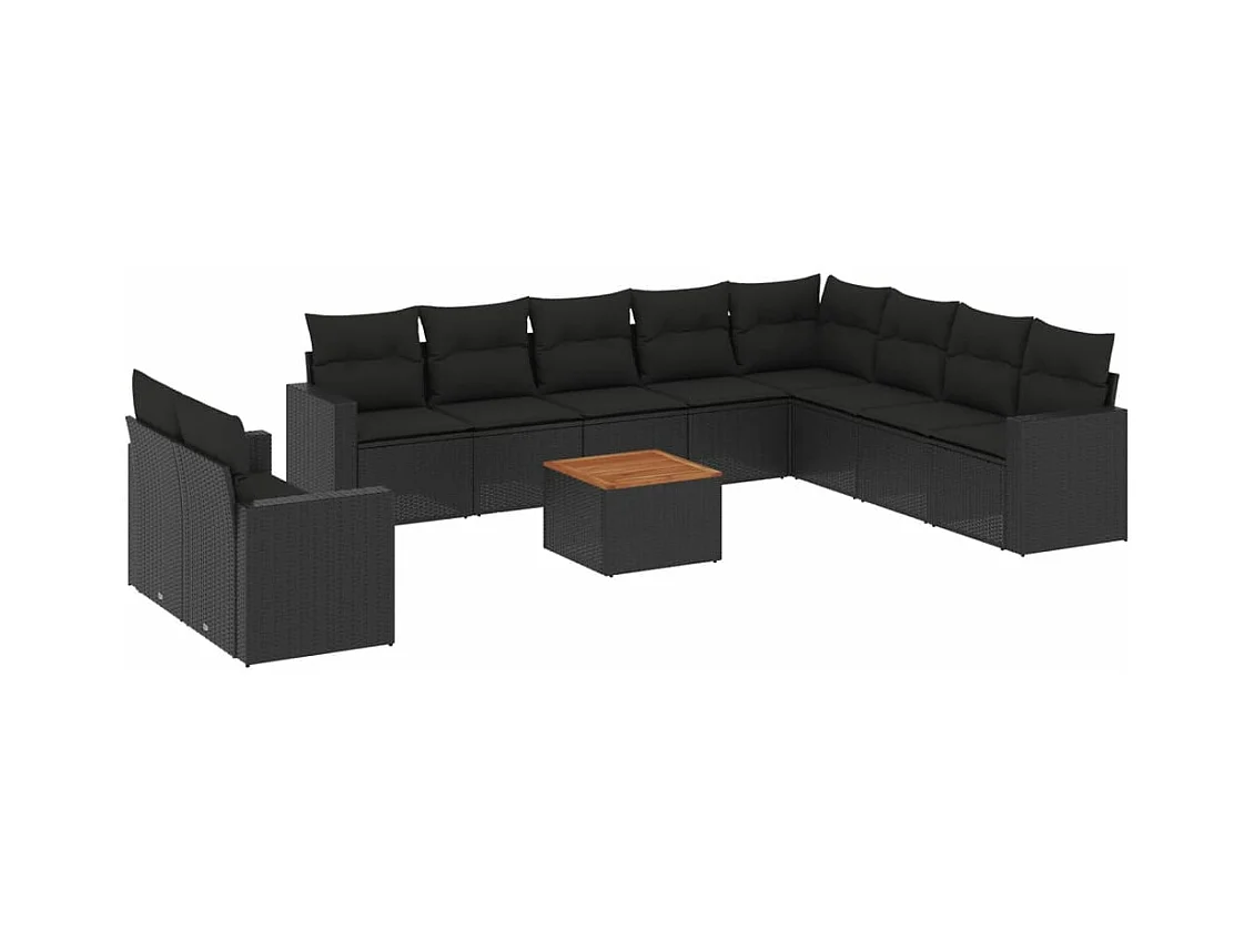 Salon de jardin 11 pcs avec coussins noir résine tressée
