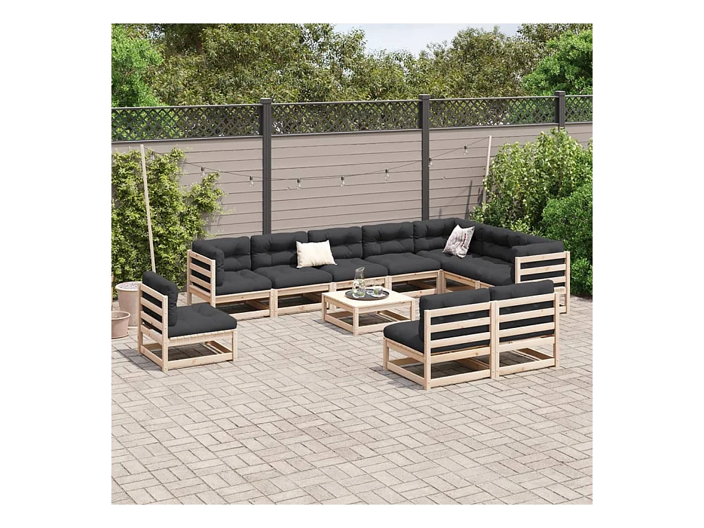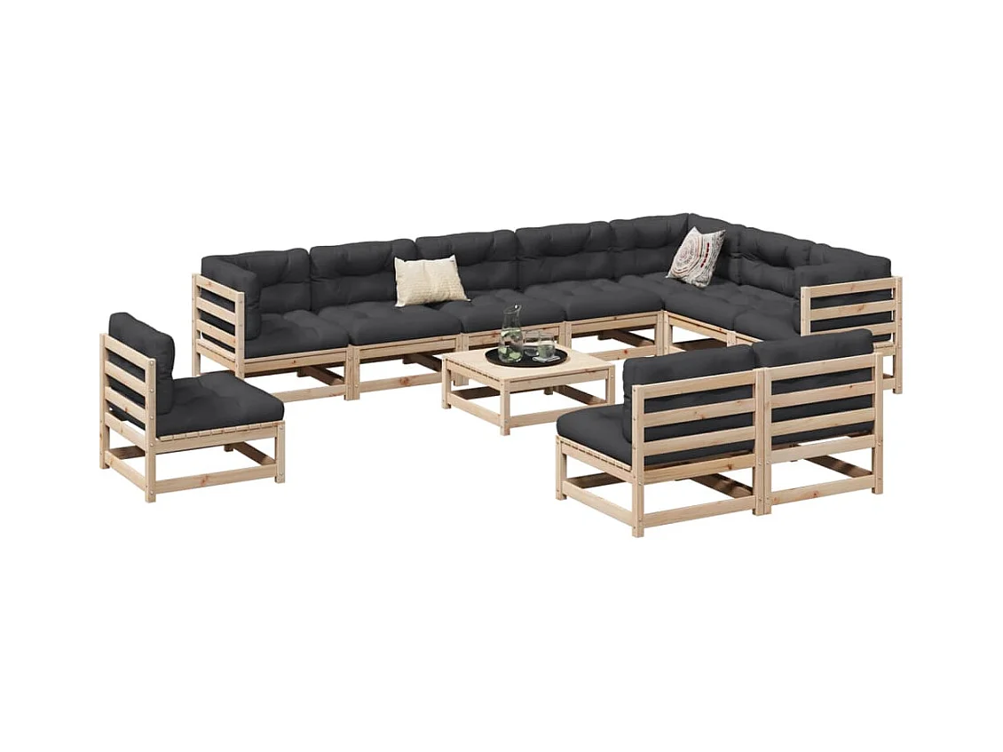 Salon de jardin 12 pcs bois de pin massif