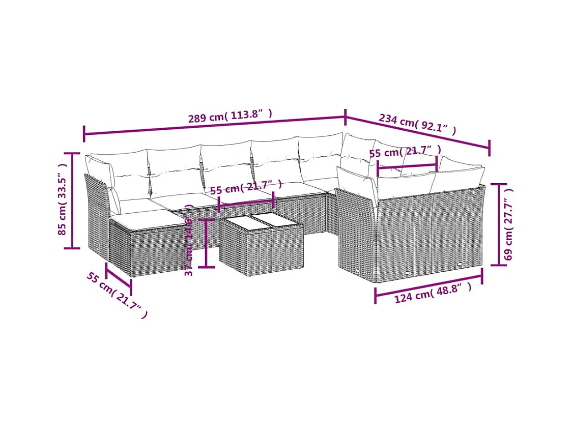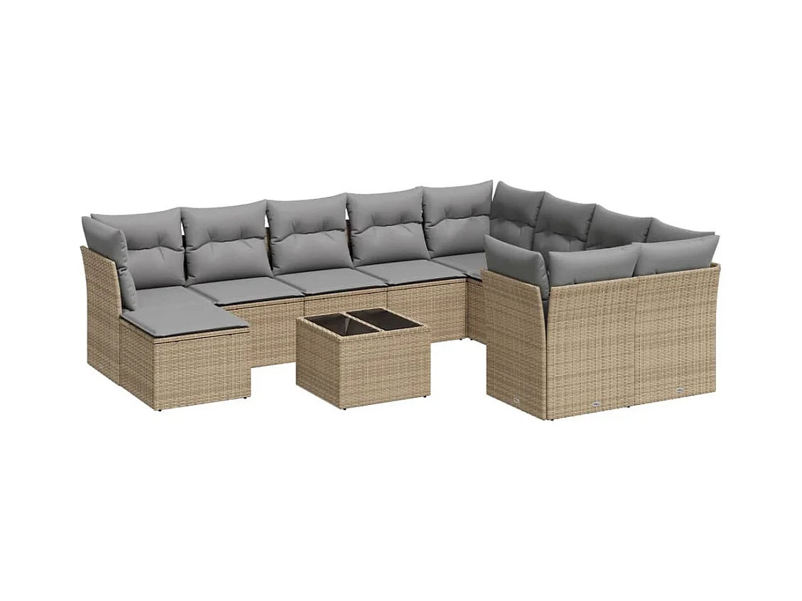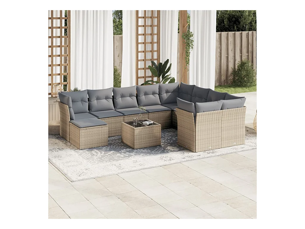 Salon de jardin 11 pièces avec coussins beige résine tressée