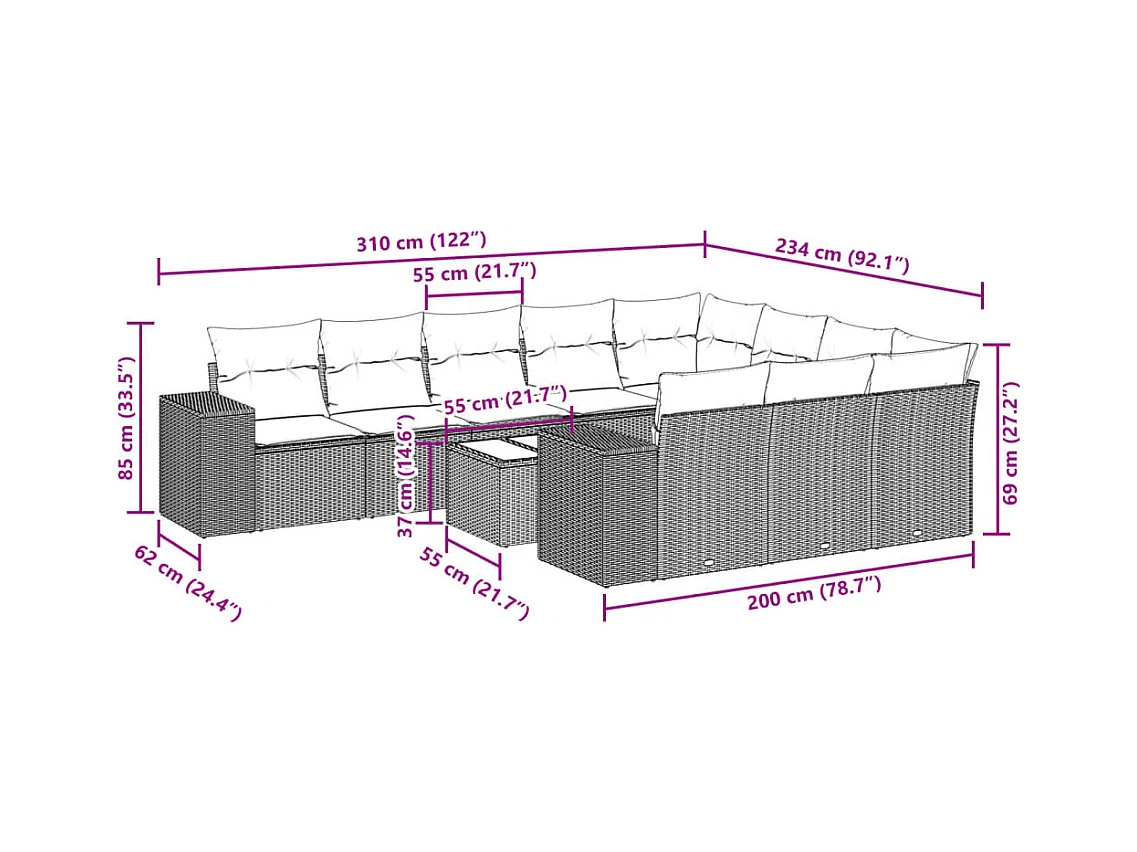 Salon de jardin 11 pièces avec coussins beige résine tressée