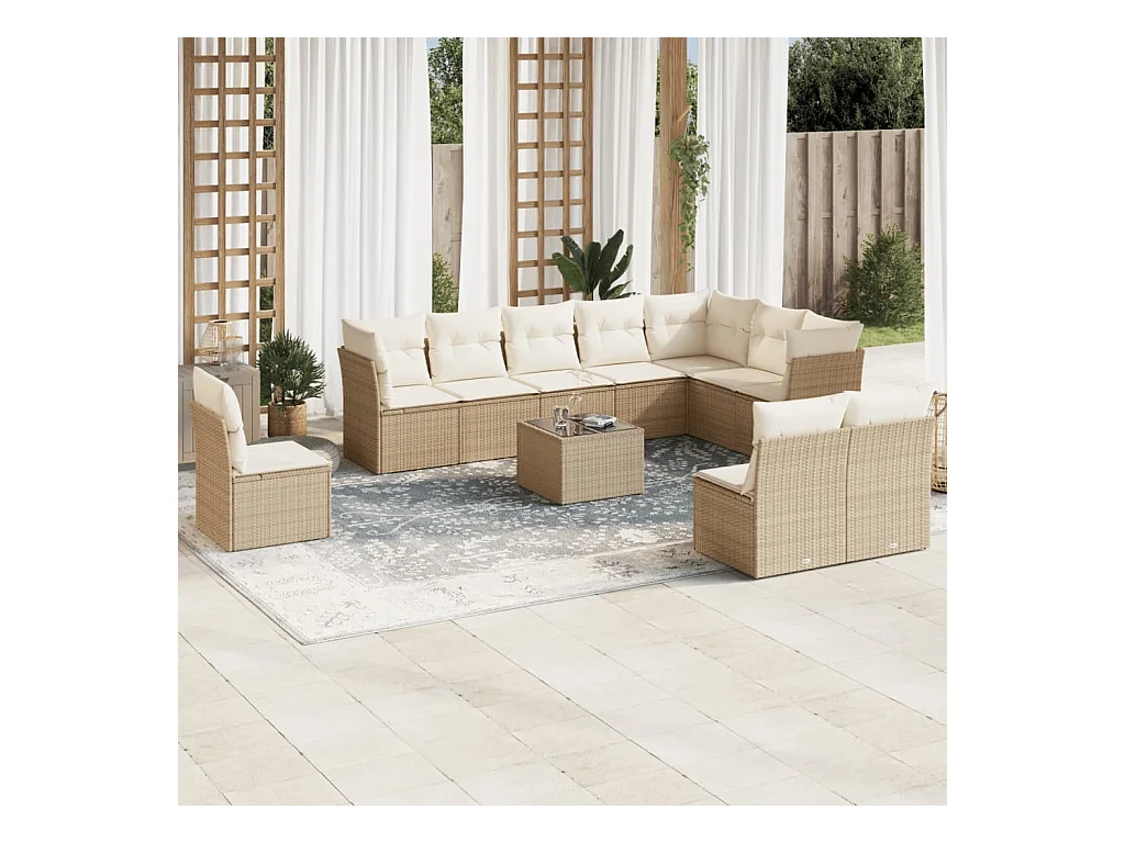 Salon de jardin 11 pièces avec coussins beige résine tressée