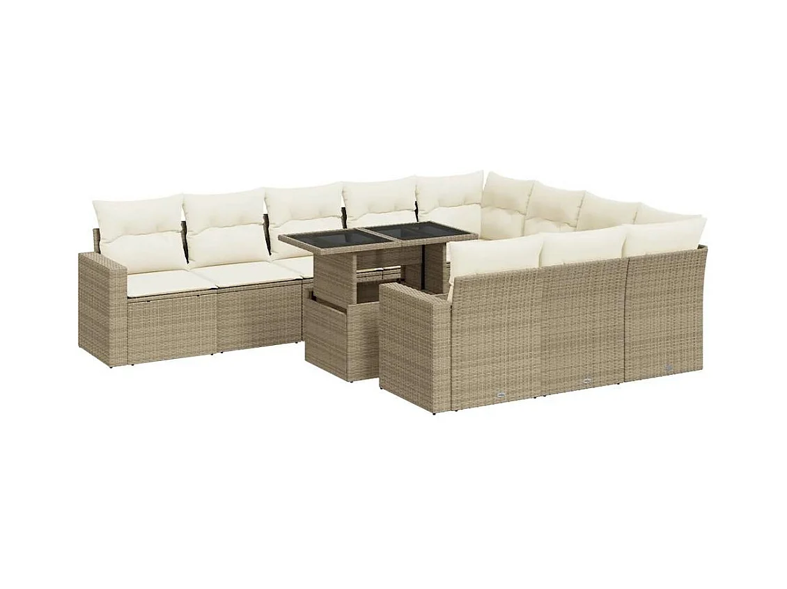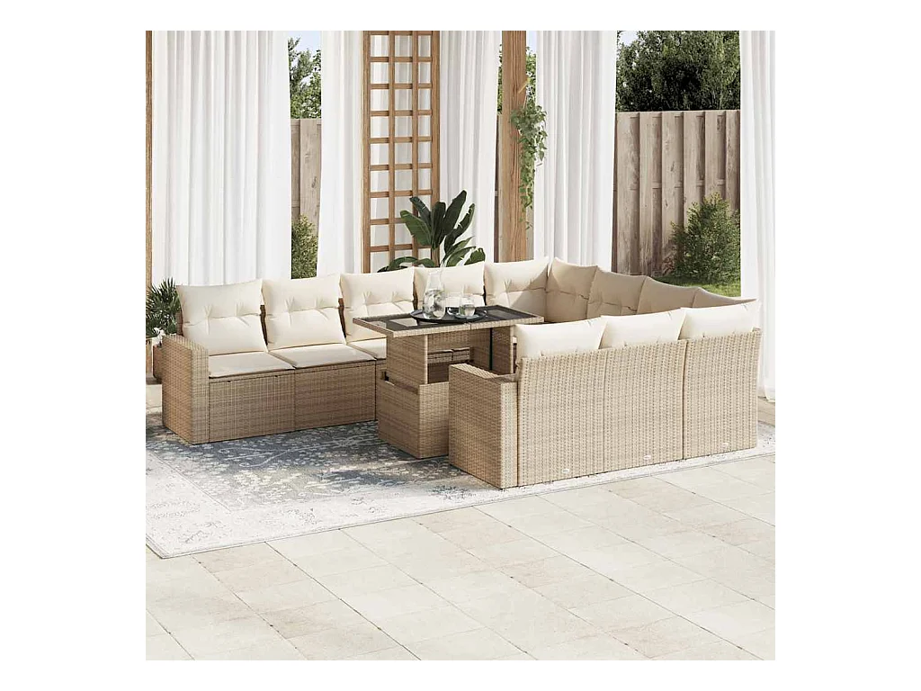 Salon de jardin 11 pièces avec coussins beige résine tressée