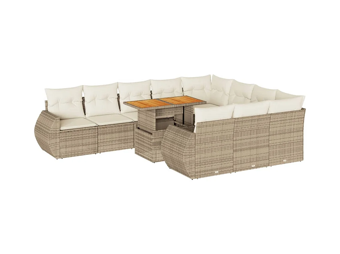 Salon de jardin 11 pièces avec coussins beige résine tressée