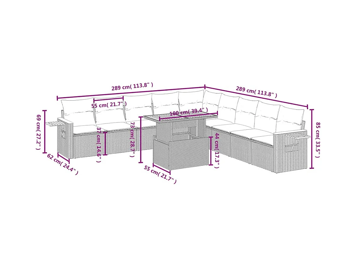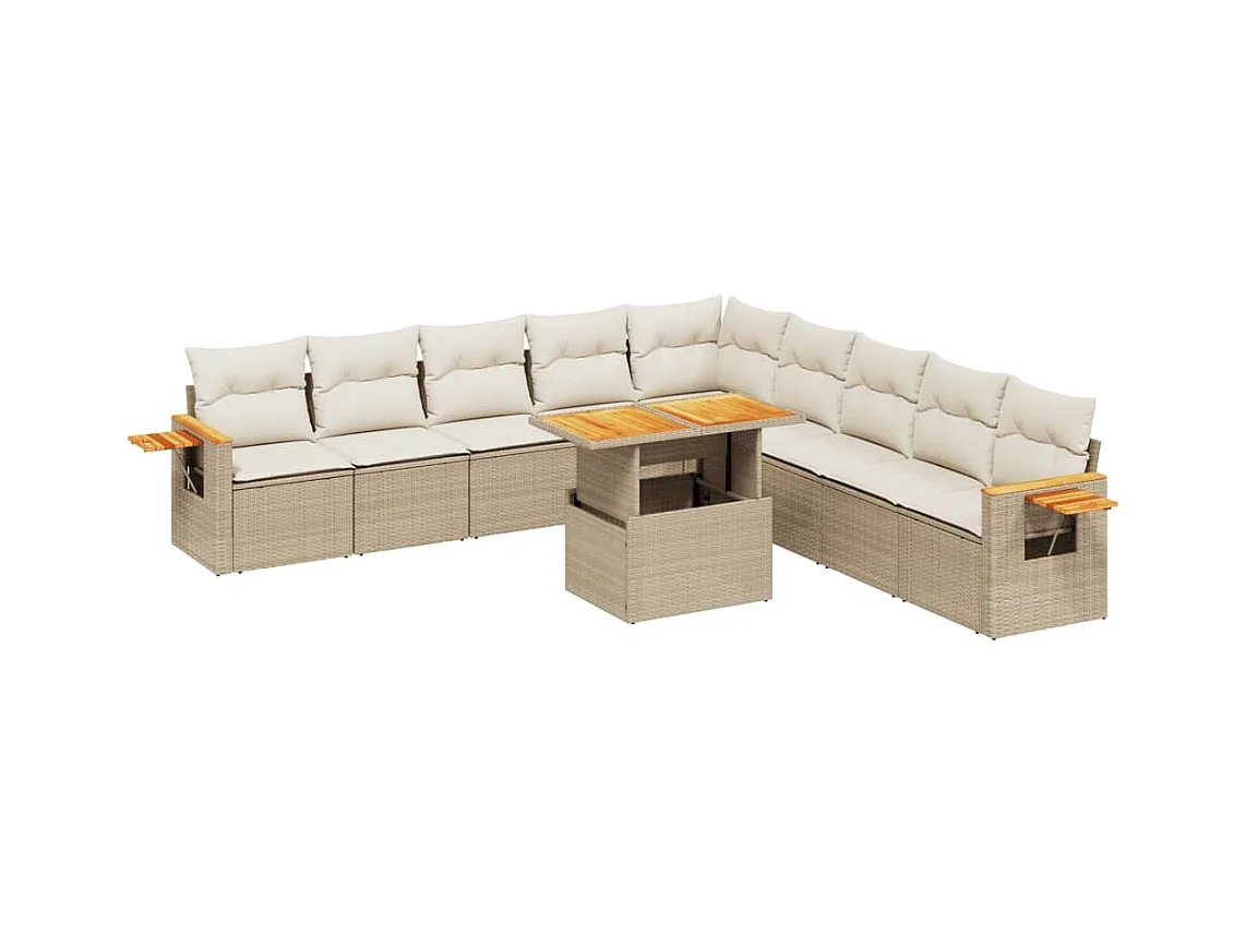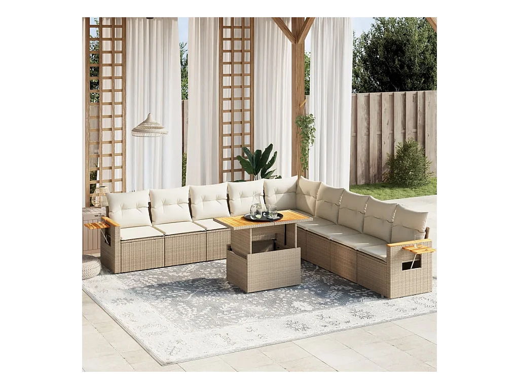 Salon de jardin 11 pièces avec coussins beige résine tressée
